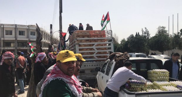 وبين أنه تم توزيع البيض على المواطنين في رسالة واضحة أن المزارع الأردني يتكبد خسائر من خلال بيعه، فالأفضل توزيع المنتجات الزراعية على المارة.