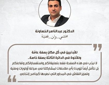 طلب احد المرشحين عن دائرة عمان الثالثة، من متابعيه على مواقع التواصل الاجتماعي اقتراح محاور برنامج انتخابي وفق اولوياتهم.