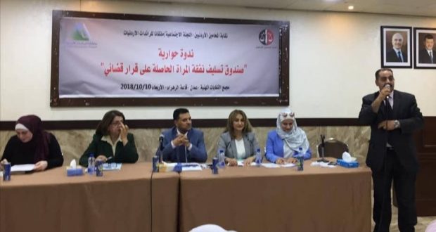 عقدت اللجنة الإجتماعيه في نقابة المحامين وجمعية ملتقانا للرائدات الأردنيات ندوة الحوارية بعنوان (صندوق تسليف المرأة الحاصلة على قرار قضائي) في مجمع النقابات المهنيه.