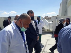 واطلع الدكتور جابر على توفر المستلزمات الطبية وتزويد المستشفيات والكوادر الطبية والتمريضية وفرق الرصد الوبائي بالمعقمات والملابس المخصصة في التعامل مع الحالات التي تستقبلها في اقسام الطوارئ وفي الميدان.