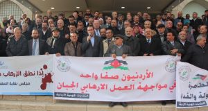 نفذت النقابات المهنية وقفة تضامنية مع الاجهزة الامنية وضحايا الحادث الارهابي الذي شهدته الكرك وذلك امام مجمع النقابات. وادى المشاركون في الاعتصام صلاة الغائب على ارواح الشهداء الذين قضوا خلال العمل الارهابي. ورفع المشاركون في الوقفة يافطات “شهدائنا الابرار لقد سطرتم بدمائكم الزكية صفحة من صفحات البطولة والفداء” “الاردنيون الابرار صفا واحدا في مواجهة العمل الارهابي الجبان”. واشاد رئيس مجلس ...