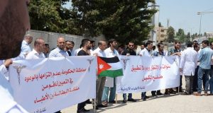 د.العزام: 1400 طبيبا وطبيبة ينتظرون التعيين في الصحة د.الفتياني: نقص الكوادر الطبية سبب رئيسي لاعتداءات نفذ اطباء عاطلون عن العمل بدعوة من نقابة الاطباء اعتصاما امام رئاسة الوزراء للمطالبة بايجاد فرص عمل لهم، وترجمة وعود وزارة الصحة لهم بهذا الخصوص. ورفع المعتصمون يافطات كتب عليها “سنوات من الانتظار ووعود بلا تطبيق..طفح الكيل” و”مماطلة الحكومة وعدم التزامها بالوعود في التعيين فاقم ...