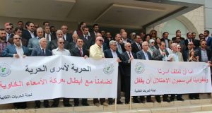 النقابات تنفذ اعتصاما تضامنيا مع الأسرى المضربين عن الطعام